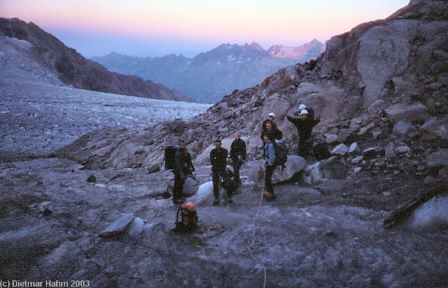 Kurz hinter der Hütte betreten wir den Gletscher ... und haben schon erste Ausfälle zu beklagen.