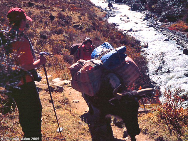 Hier im Rolwaling werden die Yaks auch zum Transport von Waren eingesetzt.