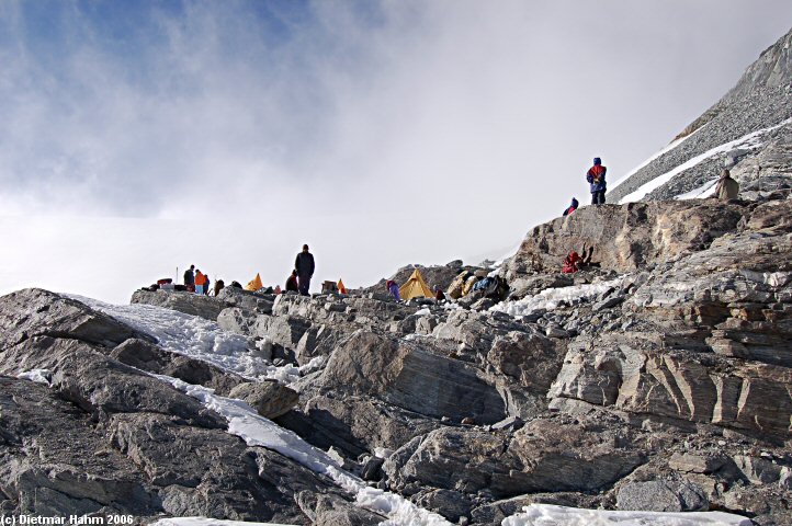 Das Lager ist erreicht. Es ist stürmisch, kalt und ziemlich ungemütlich.