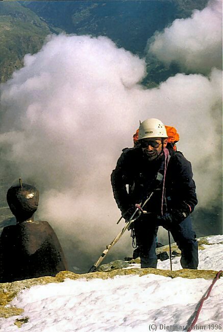 Kurz unterhalb des Gipfels treffen wir auf eine kleine Statue, die anlässlich der 125-Jahr-Feier hier aufgestellt wurde.