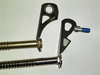 die "selbstausdrehende Eisschraube" werden sie gerne verwendet. Werden die Schrauben kürzer, so sinken auch die Haltekräfte. Kürzere Schrauben werden verwendet, wenn die Eisauflage zu dünn ist, um eine normal lange Schraube zu setzen. Vor allem beim Wasserfallklettern sollte man immer verschiedene Längen parat haben. Praktisch ist eine Farbmarkierung, die die Länge der Schraube angibt (bei den beiden mittleren Schrauben). |