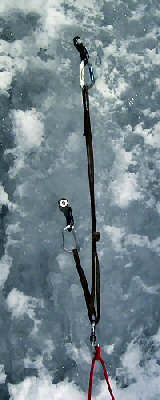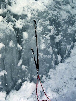 Eisschraube beim Setzen die Struktur des Eises schädigt, werden beide Schrauben mit einem großen vertikalen